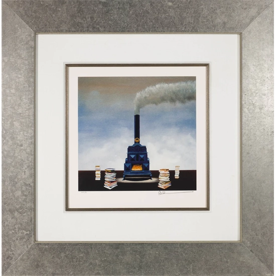 Robert Deyber Cooking The Books Framed hand-crafted stone lithograph