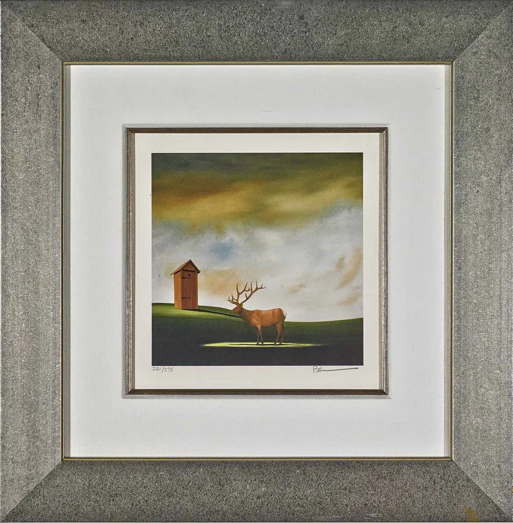 Robert Deyber Deer John Framed hand-crafted stone lithograph