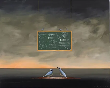 Robert Deyber s artwork is full of surprises. Every canvas revels in the artist s sense of humor, each painting a visual rendering of a clever turn on a common phrase. Despite his sense of fun, however, Robert Deyber is a seriously skilled painter. He is endlessly intrigued by visual imaginings that reside in the realm between reality and fantasy, and he is clearly able to render these imaginings brilliantly. His artwork is highly narrative in nature; his paintings convey an almost dreamlike quality to the bemused viewer. Born and raised in Greenwich, Connecticut, Deyber began drawing at an early age. Art was a necessary means of escape from an otherwise difficult world, one in which he set his mind free to visit the most remote places-a wheat field in South Dakota, the dunes of the Gobi desert, the moons of Jupiter-all within easy reach for a very imaginative young boy. Throughout his paintings, Robert Deyber moves in and out of visual themes and story lines. Compelled to create imagery where he uses a combination of highly stylized composition, light and contrasting colors, his goal is to apply all three skillfully, thereby drawing the viewer into his painting without overpowering or confusing. Deyber is a visual raconteur - a storyteller with a paintbrush, his mind s eye planted deep within the subconscious. With artistic roots that hail from the Surrealist movement, among his heroes are Rene Magritte and Salvatore Dali. While many of Deyber's paintings contain elements derived from dreams created out of the unpredictable imagery found in the subconscious, the extraterrestrial flowers have more in common with the worlds of alternate natural history imagined by Alexis Rockman or Walton Ford, and the visual rendition of current phraseology and popular culture are more in the tradition of the Pop Art movement. It is, in the end, the undecided tone between sincerity and irony that makes Robert Deyber's artwork distinctly contemporary, his visual vocabulary distinctly his own, but with a worldwide audience.