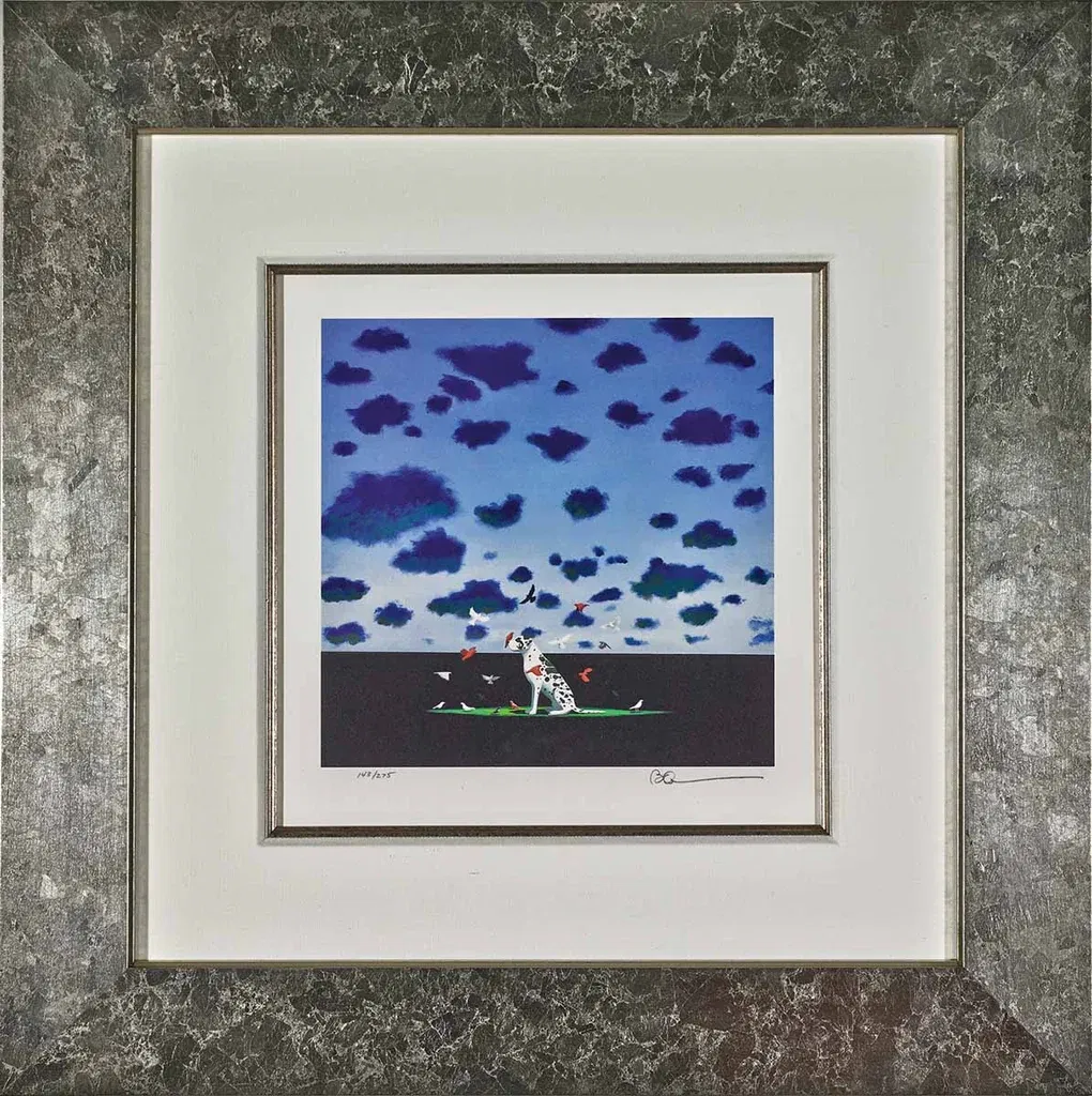 Robert Deyber The Bird Dog Framed hand-crafted stone lithograph