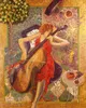 Born in Ahwaz, Iran, Sabzi started painting at the age of twelve; encouraged in his early progression as an artist by his parents and inspiring teachers. He earned a Bachelor of Science in Agricultural Engineering at the University of Jundi Shapur. "The best part of agriculture was the purity of its primal spaces," he says, explaining his early sensitivity to artistic concepts. Sabzi's early works were primarily realistic, exploring the historical and cultural themes of his homeland. His departure from Iran during the Khomeini regime brought him to Germany and then the United States. This exile provided him the opportunity to explore new artistic influences, and he began to work in abstract and figurative styles. Sabzi's subjects are almost always women – beautiful, graceful, taciturn and melancholy; they reflect love, mystery and solitude. His women are Madonnas, modern goddesses and martyred saints whose elongated forms suggest instability and internal conflict. According to Sabzi, their anonymous faces make them into religious icons that transcend and defy the demands of reality; reflecting warmth, charm, happiness, and his undisputed love and admiration for women. His paintings resonates both Eastern and Western philosophies. His rich Persian heritage provides him with ancient images, sentimental Persian themes and memories of innocence. He draws from the Western influence of modernism found in the works of Klee, Cezanne, Matisse and Bonnard. His debt to modernism, especially to Matisse, is irrefutable. Earthy hues of pale greens, yellows, purples and reds illuminate the settings and inspire the forms with unique inner vibrations. Though schematic, the treatment of the human face as luminous geometric planes is a profound statement of the artist's quest for spirituality. Sabzi goes beyond Matisse and creates spatially-revolving, post-modern worlds. Images reflected in mirrors assume a life of their own. The effect is a powerful multiplicity of emotional representation. Here the fantastic is treated as ordinary and the rich fabrics of the paintings resonate intimacy. An accomplished abstract painter, Sabzi's passion for the spiritual is represented in the open spaces, symbolism and intricate patterns that make up the backgrounds of his compositions. Juxtaposing the complex feelings, body language and attitudes of his predominantly female figures against a backdrop of shapes and forms in space, Sabzi uses texture, lines and color to make artistic statements about love and beauty.