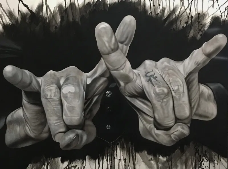 Trevor “Stickman” Stickel specializes in icon based, pop-realism portraits that capture legendary moments, powerful ideas, and raw emotion. His work is described as gritty-yet fresh, complex-yet simple. Graduating from a Jekyll and Hyde influence early in his career, in which he divided his time between family portraits and airbrush design work on helmets and Harleys, Stickman had the epiphany to combine both styles while reading “According to the Rolling Stones”. Two weeks later he finished his first canvas portrait of Mick Jagger, aptly titled “Please allow me to introduce myself”, which forever changed the direction of his career in the art world. THE MISSION The idea or "mission" behind Stickman’s artwork is to create an artistic tribute to the music and to the musicians that have had a tremendous impact on him and many others. Historically, these tributes would have been limited to photos/posters that adorned the bedroom walls of teenagers and dorm rooms throughout adolescence. Stickman aims to create a style of art that brings these iconic figures back into our lives, and in a manner that adults can display proudly in their homes. THE CONCEPT The concept is to take a realistic portrait and juxtapose it with a background that expresses the feelings and emotions of the subject. This method also allows Stickman to explore other disciplines of art – many of his backgrounds will include abstract, expressionism, impressionism, realism, pop art, street art, surrealism and quite often a combination of these. This is where he gets to enjoy the artistic side of these pieces, while paying additional homage to some of his favorite visual artists. THE HIDDEN MESSAGES AND SYMBOLS In addition to the art itself, Stickman also adds (and quite often hides) his trademarked Stickman symbol (stick figure with devil horns) and the statement "Devil Inside" to the painting. €¢ The Stickman symbol is derived from Stickman’s last name (Stickel) and a common phrase he hears from viewers, "I can't even draw a stick man". The horns represent rock and roll (his primary focus), which is generally regarded as the devil’s music, and references the duality of man (good vs. evil). €¢ The statement "Devil Inside" also references this Jekyll and Hyde type of duality. Stickman often feels there is a difference between Stickman the artist and Trevor Stickel the person. When focused on a subject and working on a piece, he often gets so involved in the subject he finds himself emulating them in the way he dresses and acts, similar to a method actor. €¢ The signature on the bottom right corner usually shows the Stickman symbol imitating the subject. THE TITLE The title of each piece is often overlooked but may very well be the most important piece of the puzzle. Stickman looks for a lyric that he believes personifies the subject or his feeling toward that subject and from there, begins to create an image and feeling that takes the viewer to that emotional state of mind. The titles are always a lyric from the subject's song but never the title of a song. If the viewer is a fan of the subject, they should almost hear the lyric or feel the emotion of the lyric when looking at the piece. Knowing the title completes the emotional connection to the painting and usually reveals a personal trait about the subject.