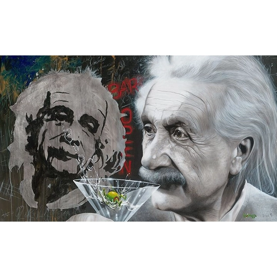 Theory of Mixology - Einstein Giclee On Canvas by Stickman is signed by the artist and comes with a certificate of authenticity.