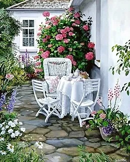 Serene settings, gentle harmonies, soft, inviting rooms, lush, floral gardens, quiet seas that evoke tranquility - artist Susan Rios' distinctive style is evident in every image she paints. We are drawn in by the love and peace depicted in each painting, uplifted both visually and emotionally. It is as if Susan has personally invited us into her private places, allowing us to linger there, partaking of the scene. “There are stories in most of my paintings, and often, the piece will speak of what is going on in my own inner world. I add elements to complete the memory of the dream or the moment. People often say that there is something that feels familiar when they see my work. I think what they may be responding to is the emotion a painting will evoke and there is a familiarity about that. We all share so many of the same feelings.” Susan resides in Southern California, amidst rooms very reminiscent of the images she paints. Many aspects of Susan’s world are subjects in her paintings, including her daughter, Olivia and granddaughter, Rose, her dog, Annie, as well as her furniture, collectibles, pillows, and ever-present bouquets of flowers from her year-round gardens. Nowadays, Susan’s love of art has evolved to include teaching and mentoring, with students ranging from children to seniors, from first-time novice to experienced artist. Her encouraging style brings out the best in everyone, and no one is more delighted than Susan herself as she views the remarkable paintings rendered by budding protégés. "It's truly the most satisfying thing to help people evolve with their creativity and watch them become more confident as their work gets better and better." Susan is a rare blend of sensitive artist and practical businesswoman who has built businesses from the ground up with integrity and a commitment to her collectors. Susan Rios Designs now offers a full line of canvas prints, embellished one of a kind prints, cards, miniprints, jewelry, and of course, Susan Rios original paintings.