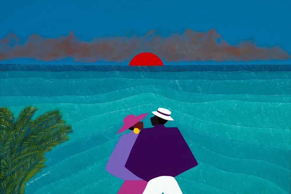 Synthia SAINT JAMES’ art and celebrity has been utilized in numerous promotional campaigns for such companies as Royal Caribbean International, Johnson & Johnson’s Ambi, Liberty Mutual, Seagram’s, Union Bank of California, Washington Mutual Bank, Maybelline, Kayser-Roth, Coca Cola USA, Essence Communications, Barnes and Noble, and AARP (a painting design for a Metro Rail Train). Her artwork in hospitals include commissioned originals for Glendale Memorial Hospital, Glendale, CA and Sisters of Providence, Seattle, WA, and fine art reproductions that grace the walls of such hospitals as Kaiser Permanente, Martin Luther King, Jr. Community Hospital, Glendale Adventist Medical Center, City of Hope Medical Center and Bridgeport Hospital. SAINT JAMES’ architectural designs include a 2’8”x150 foot mural design for Ontario International Airport International Baggage Claim, Ontario, CA, six 6x9 foot elevator lobby door designs for California’s East End Complex, Sacramento, CA, three 45x22” stained glass windows for the West Tampa Library, Tampa, FL, and a 4x7 foot ceramic tile mural for Cowan Elementary School, Westchester, CA. United States Ambassadors have requested that the art of Synthia SAINT JAMES be included in the interior design of their embassies through the Art in Embassies Program since 1991. A partial listing of the embassies include Caracas, Venezuela, Gagnoa, Ghana, Abidjan, Cote d’Ivoire, Abuja, Nigeria, The Republic of the Congo Brazzaville, Asmara, Eritrea, Singapore, Lome,Togo, Valleta, Malta and Juba, South Sudan. With a focus on multicultural figurative paintings, SAINT JAMES also creates vibrant seascapes and landscapes that capture the essence of countries all over the world and even a series on butterflies. SAINT JAMES’ artwork has been described as “ebullient”, “bold”, “she creates paintings that remind one of Matisse cutouts in their clear line and intense color” and “joyful”. “SAINT JAMES’ paintings have a healing power that soothes and comforts our souls.”