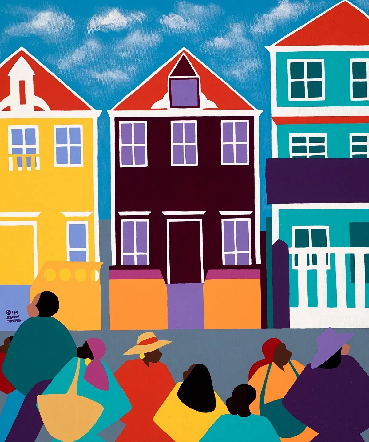 Synthia SAINT JAMES’ art and celebrity has been utilized in numerous promotional campaigns for such companies as Royal Caribbean International, Johnson & Johnson’s Ambi, Liberty Mutual, Seagram’s, Union Bank of California, Washington Mutual Bank, Maybelline, Kayser-Roth, Coca Cola USA, Essence Communications, Barnes and Noble, and AARP (a painting design for a Metro Rail Train). Her artwork in hospitals include commissioned originals for Glendale Memorial Hospital, Glendale, CA and Sisters of Providence, Seattle, WA, and fine art reproductions that grace the walls of such hospitals as Kaiser Permanente, Martin Luther King, Jr. Community Hospital, Glendale Adventist Medical Center, City of Hope Medical Center and Bridgeport Hospital. SAINT JAMES’ architectural designs include a 2’8”x150 foot mural design for Ontario International Airport International Baggage Claim, Ontario, CA, six 6x9 foot elevator lobby door designs for California’s East End Complex, Sacramento, CA, three 45x22” stained glass windows for the West Tampa Library, Tampa, FL, and a 4x7 foot ceramic tile mural for Cowan Elementary School, Westchester, CA. United States Ambassadors have requested that the art of Synthia SAINT JAMES be included in the interior design of their embassies through the Art in Embassies Program since 1991. A partial listing of the embassies include Caracas, Venezuela, Gagnoa, Ghana, Abidjan, Cote d’Ivoire, Abuja, Nigeria, The Republic of the Congo Brazzaville, Asmara, Eritrea, Singapore, Lome,Togo, Valleta, Malta and Juba, South Sudan. With a focus on multicultural figurative paintings, SAINT JAMES also creates vibrant seascapes and landscapes that capture the essence of countries all over the world and even a series on butterflies. SAINT JAMES’ artwork has been described as “ebullient”, “bold”, “she creates paintings that remind one of Matisse cutouts in their clear line and intense color” and “joyful”. “SAINT JAMES’ paintings have a healing power that soothes and comforts our souls.”