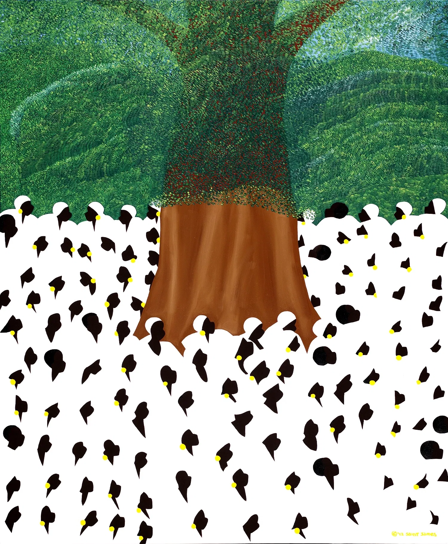 Synthia SAINT JAMES’ art and celebrity has been utilized in numerous promotional campaigns for such companies as Royal Caribbean International, Johnson & Johnson’s Ambi, Liberty Mutual, Seagram’s, Union Bank of California, Washington Mutual Bank, Maybelline, Kayser-Roth, Coca Cola USA, Essence Communications, Barnes and Noble, and AARP (a painting design for a Metro Rail Train). Her artwork in hospitals include commissioned originals for Glendale Memorial Hospital, Glendale, CA and Sisters of Providence, Seattle, WA, and fine art reproductions that grace the walls of such hospitals as Kaiser Permanente, Martin Luther King, Jr. Community Hospital, Glendale Adventist Medical Center, City of Hope Medical Center and Bridgeport Hospital. SAINT JAMES’ architectural designs include a 2’8”x150 foot mural design for Ontario International Airport International Baggage Claim, Ontario, CA, six 6x9 foot elevator lobby door designs for California’s East End Complex, Sacramento, CA, three 45x22” stained glass windows for the West Tampa Library, Tampa, FL, and a 4x7 foot ceramic tile mural for Cowan Elementary School, Westchester, CA. United States Ambassadors have requested that the art of Synthia SAINT JAMES be included in the interior design of their embassies through the Art in Embassies Program since 1991. A partial listing of the embassies include Caracas, Venezuela, Gagnoa, Ghana, Abidjan, Cote d’Ivoire, Abuja, Nigeria, The Republic of the Congo Brazzaville, Asmara, Eritrea, Singapore, Lome,Togo, Valleta, Malta and Juba, South Sudan. With a focus on multicultural figurative paintings, SAINT JAMES also creates vibrant seascapes and landscapes that capture the essence of countries all over the world and even a series on butterflies. SAINT JAMES’ artwork has been described as “ebullient”, “bold”, “she creates paintings that remind one of Matisse cutouts in their clear line and intense color” and “joyful”. “SAINT JAMES’ paintings have a healing power that soothes and comforts our souls.”