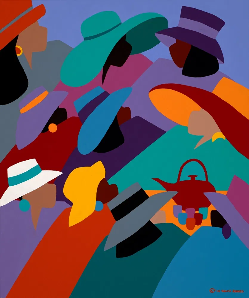 Synthia SAINT JAMES’ art and celebrity has been utilized in numerous promotional campaigns for such companies as Royal Caribbean International, Johnson & Johnson’s Ambi, Liberty Mutual, Seagram’s, Union Bank of California, Washington Mutual Bank, Maybelline, Kayser-Roth, Coca Cola USA, Essence Communications, Barnes and Noble, and AARP (a painting design for a Metro Rail Train). Her artwork in hospitals include commissioned originals for Glendale Memorial Hospital, Glendale, CA and Sisters of Providence, Seattle, WA, and fine art reproductions that grace the walls of such hospitals as Kaiser Permanente, Martin Luther King, Jr. Community Hospital, Glendale Adventist Medical Center, City of Hope Medical Center and Bridgeport Hospital. SAINT JAMES’ architectural designs include a 2’8”x150 foot mural design for Ontario International Airport International Baggage Claim, Ontario, CA, six 6x9 foot elevator lobby door designs for California’s East End Complex, Sacramento, CA, three 45x22” stained glass windows for the West Tampa Library, Tampa, FL, and a 4x7 foot ceramic tile mural for Cowan Elementary School, Westchester, CA. United States Ambassadors have requested that the art of Synthia SAINT JAMES be included in the interior design of their embassies through the Art in Embassies Program since 1991. A partial listing of the embassies include Caracas, Venezuela, Gagnoa, Ghana, Abidjan, Cote d’Ivoire, Abuja, Nigeria, The Republic of the Congo Brazzaville, Asmara, Eritrea, Singapore, Lome,Togo, Valleta, Malta and Juba, South Sudan. With a focus on multicultural figurative paintings, SAINT JAMES also creates vibrant seascapes and landscapes that capture the essence of countries all over the world and even a series on butterflies. SAINT JAMES’ artwork has been described as “ebullient”, “bold”, “she creates paintings that remind one of Matisse cutouts in their clear line and intense color” and “joyful”. “SAINT JAMES’ paintings have a healing power that soothes and comforts our souls.”