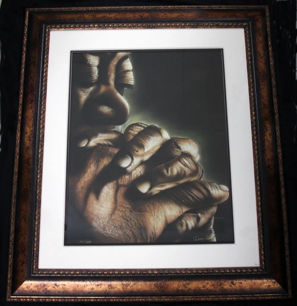 Blessed Hands Giclee Framed - ATW014F NOTES: Giclée Edition of 995 on Watercolor Paper, Size 20.5 x 26 Frame Size 33 1/2 x 39. Wood Frame with linen mat. Blessed Hands Giclee Framed   by Terry Wilson  is signed by the artist and comes with a certificate of authenticity. Image Copyright © 2025 by Terry Wilson