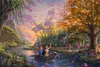 Thomas Kinkade Studios portfolio of Disney artwork captures the beauty of Disney fans’ favorite movies and theme parks. Each Thomas Kinkade Studios Disney movie painting tells an entire story in one image, using the signature style of “narrative panorama”, and each Disney Theme Park painting captures the magic of favorite family memories.. 1958 – 2012 In the very beginning of his artistic career, Thomas Kinkade put his entire life savings into the printing of his first lithograph. Though at the time he was already an acclaimed illustrator, Thom found that he was inspired not by fame and fortune, but by the simple act of painting straight from the heart, putting on canvas the natural wonders and images that moved him most. Throughout his life Thomas Kinkade shared his joy and used his paints in support of hospitals, schools, and humanitarian relief. Though the recipient of countless awards and honors, it was Thom’s profound sense of purpose that his art was not just an accessory, but also a ministry, that continues on as his legacy. From custom images that were sold for The Salvation Army, Hurricane Katrina relief, Rotary International, to donations that now grace the halls of St. Jude’s Children’s Research Hospital, the White House, The Vatican, and Britain’s Tate Museum, Thom raised hundreds of thousands of dollars over his lifetime for charity. Thom’s dearest wish had always been that his artwork would be a messenger of hope and inspiration to others – a message to slow down, appreciate the little details in life, and to look for beauty in the world around us. As millions of collectors around the world sit back and enjoy his artwork in their homes, there is no doubt that Thomas Kinkade had indeed achieved his goal of Sharing the Light.