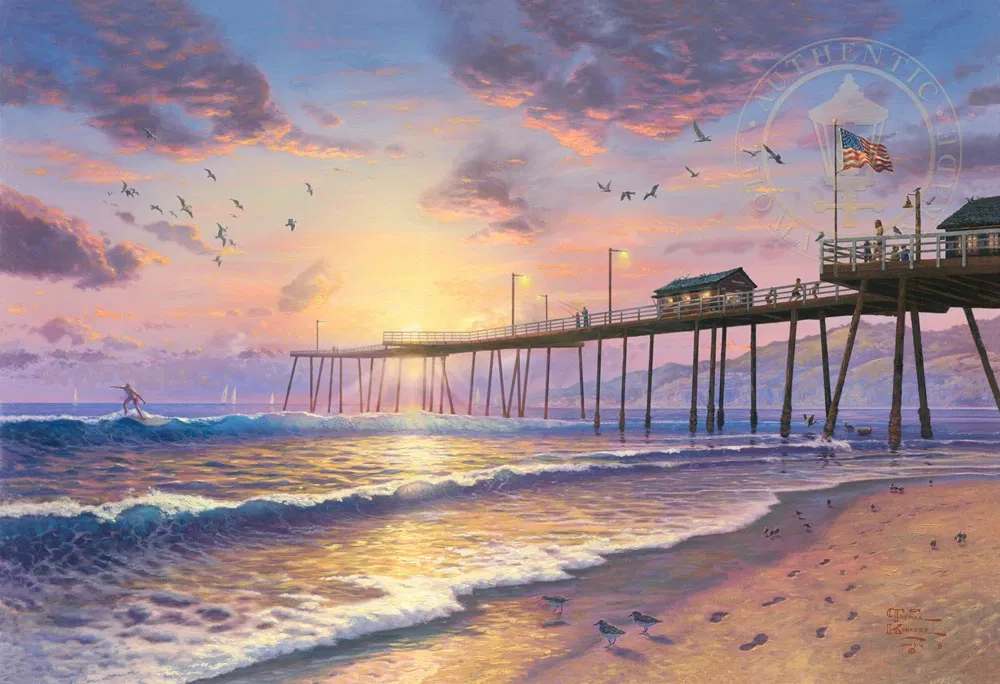 Thomas Kinkade Footprints in the Sand - Pismo pier Giclee On Canvas Artist Proof