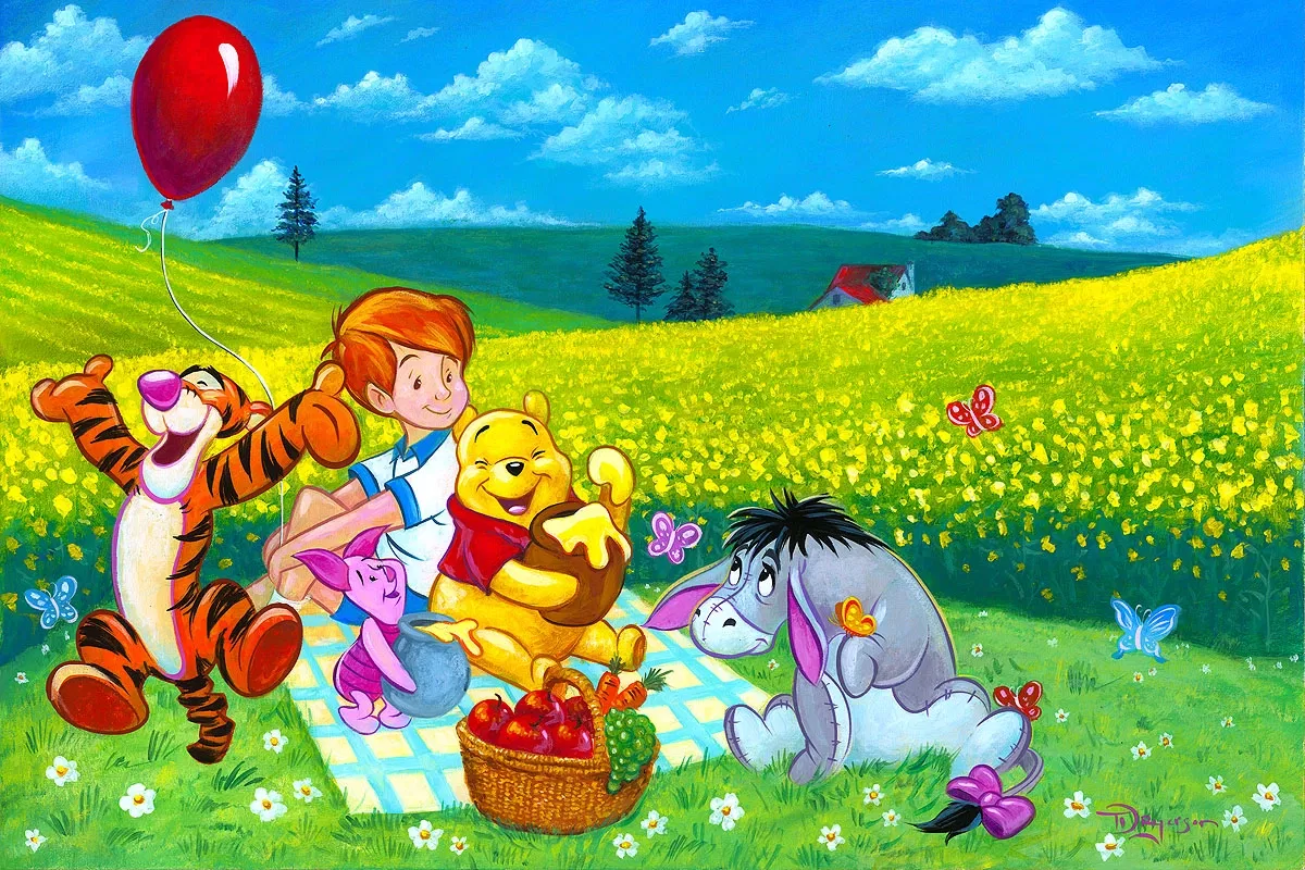 Tim Rogerson Summer Picnic From Winnie The Pooh Hand-Embellished Giclee on Canvas