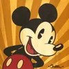 Monte Trevor Carlton was born in 1972 in Olympia, Washington State. Although he took up painting in high school, the first artistic passion that Trevor embraced was acting. He decided to forgo an art scholarship in favor of attending a dramatic arts scholarship at Skagit Valley College. Trevor next attended the Lee Strasberg Acting Workshop. The following year he relocated to Los Angeles to pursue an acting career. Amidst the chaos of auditions and callbacks, Trevor paid the bills by working in a custom furniture store, specializing in antiquing and faux finish designs. It was here that a style was born. Using reclaimed lumber as his "canvas", he started painting images of vintage Americana with subjects ranging from pop icon celebrity to the hey day of jazz. After numerous gallery shows in Los Angeles and private commissions he has now combined his unique style to that most American of symbols, MICKEY MOUSE. Along with a series of classic lobby card paintings, he has also created a performance piece that has him painting a large canvas of our favorite Disney characters in a matter of minutes.