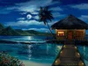 Walfrido Garcia Moonlit Bungalow Hand-Embellished Giclee on Canvas