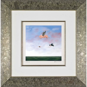 Robert Deyber When Pigs Fly hand-crafted stone lithograph