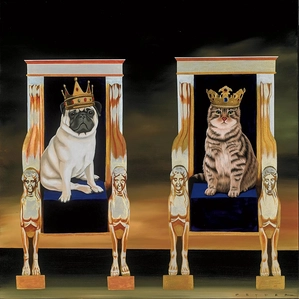Robert Deyber Reigning Cats and Dogs Framed hand-crafted stone lithograph