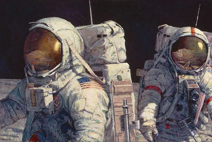 The space program has seen unprecedented achievements and Bean realized that most of those who participated actively in this adventure would be gone in forty years. He knew that if any credible artistic impressions were to remain for future generations, he must paint them now. "My decision to resign from NASA in 1981 was based on the fact that I am fortunate enough to have seen sights no other artist ever has," Bean said, "and I hope to communicate these experiences through art."