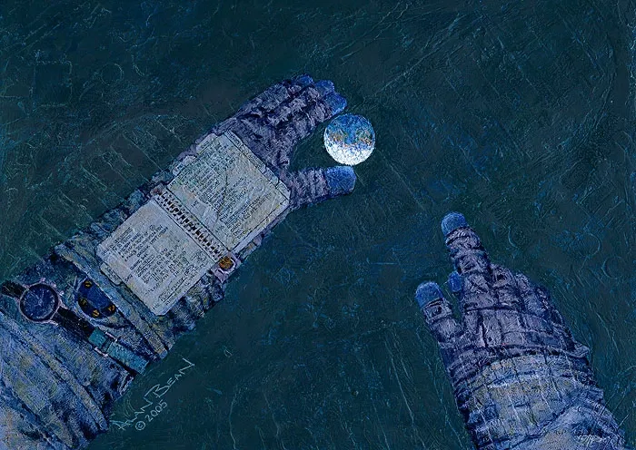 The space program has seen unprecedented achievements and Bean realized that most of those who participated actively in this adventure would be gone in forty years. He knew that if any credible artistic impressions were to remain for future generations, he must paint them now. "My decision to resign from NASA in 1981 was based on the fact that I am fortunate enough to have seen sights no other artist ever has," Bean said, "and I hope to communicate these experiences through art."