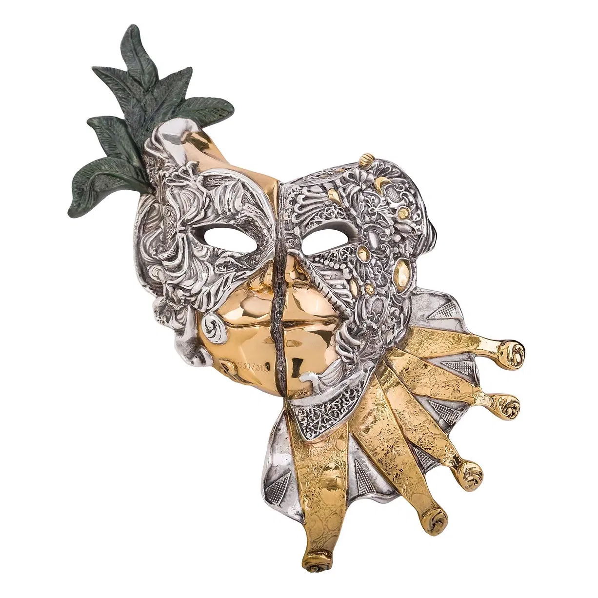 Harlequin Mask - D2105 NOTES: Harlequin Mask. A splendidly designed Harlequin Mask in Silver, 24K Gold & Green Copper. Designed and handmade in D'Argenta México. Unique piece by D'Argenta Artist Javier Arenas. 2.20 lb. Harlequin Mask   by Dargenta  Image Copyright © 2025 by Dargenta