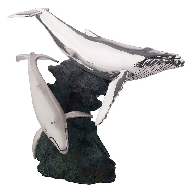 Dargenta Silver Calf & Mother Humpback Whale Statue