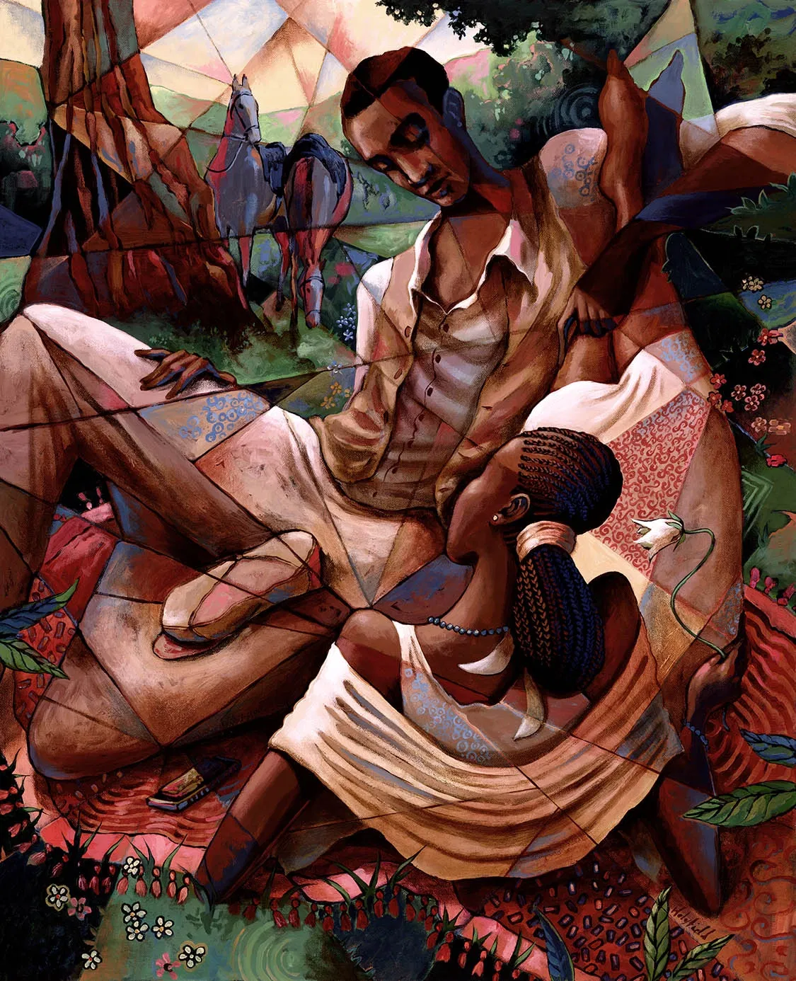Born and raised in Clarksburg, West Virginia, John Holyfield was orphaned and reared by his grandmothers. Early in childhood, his interest in art was evident. Encouraged by teachers, family and friends, he studied art throughout school and went on to Howard University and the university of D.C. to major in graphic design. John's interests, however, soon switched to the finer arts. Realizing the appeal of his works, he entered the art market and has become a leading African-American artist. John's work has a strong southern folksy feel, capturing the essence of rural life. John paints with the maturity of a much older artist through the use of images that seem from an era past, yet with timeless messages. John's main themes are family, spirituality, and culture. For much of the subject matter, he draws from his family members, childhood memories and stories from his grandmothers. His grandmothers are his greatest inspirations; which explains the repetition of women in his works. Growing up a Baptist, he was captivated by the church and often depicts church scenes and images dealing with spirituality. Most memorable were the choir and the music; which are also repeated themes. John sensed, early on, that being black was something unique and special. he noticed that aspects such as music, spirituality, heritage, ways and traditions set his race apart from others. and he felt compelled to capture this experience, visually, on canvas. Such artists as Ernie Barnes, Norman Rockwell, and Frederic Leighton inspire John's style. Like Barnes, his compositions are full fo movement and his characters elongated and fluid. Most of his paintings, at a glance, tell a story or create a scenario. This style of visual story-telling is similar to Rockwell. John's dramatic use of light and shadows within his images is a direct influence of Leighton. Browse and enjoy the great African American Art work from one of Today's most collected African American Artists, John Holyfield.