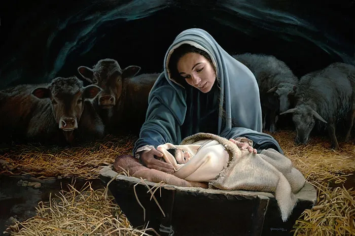 Young Messiah - LS00039 NOTES: "I remember after the birth of my first child when everyone had left and I was alone with my son for the first time. I looked at him lying on the bed and realized I was responsible for this new life. How could I teach him everything he needed? I was terrified. I held him close and the two of us cried. Those were tears of fear and tears of joy, but most of all they were tears of love. Looking into his little face, I made a promise to God that I have spent my life trying to keep." Was it different for Mary on that night in Bethlehem? Although her calling was unlike any other, as a first-time mother she must have felt the emotions that come with having a child. I imagine she too looked to heaven for answers and assurances and like every mother cried tears of fear, tears of joy and tears of love. This original work was commissioned by Ocean Blue Entertainment and 1492 Pictures to assist in promoting the motion picture "The Young Messiah" was released in 2016. The Greenwich Workshop is proud to be a partner in offering to our Authorized Dealers an opportunity to share with their collectors this exciting new Fine Art Limited Edition canvas release by Liz Lemon Swindle. Please place your order today and ask about how you can receive an official movie poster with each purchase.. Young Messiah  Giclee On Canvas by Liz Lemon Swindle  is signed by the artist and comes with a certificate of authenticity. Image Copyright © 2025 by Liz Lemon Swindle