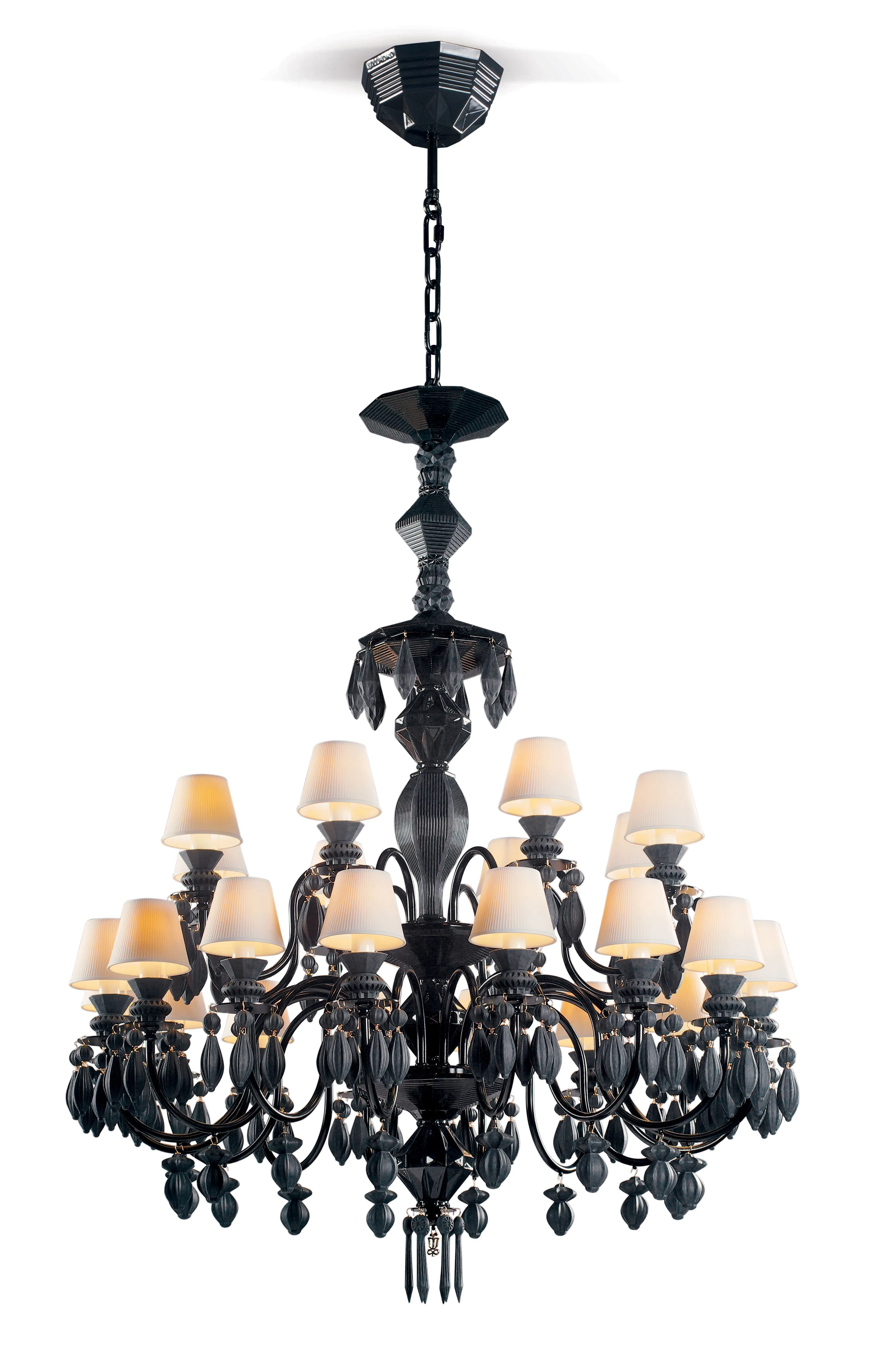 Lladro Lighting Belle de Nuit 24 Lights Chandelier Absolute Black Lighting