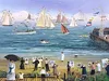I was born in 1951, in Philadelphia. My sisters and brothers and I grew up in Birmingham , Michigan. Our mother was a gifted watercolorist who never had the time to pursue her own creative passion. She transferred those desires to my sister and me, who took them up almost dutifully. Our mother provided us with good materials, for which I will always thank her, as some of the real magic of painting is released through the alchemy of paint and surface. Over the years, my style has evolved consistently, as I have evolved. Change and openness are essential to the creative spirit. I can never adequately describe my art , as it defies easy categorization. Much of it has reflected coastal New England life with an emphasis on the marine. My children were brought up in a Maine fishing village out of which my husband ran a boat fishing for lobster, bluefin tuna, urchins, and other exotic and magical creatures of the deep. All the time spent on the water has deeply affected my work. My experiences in the world of art publication led me to branch out and explore the world of the narrative as inspired by old photographs. This offers a rich and limitless vein of possibility. I never tire of probing into the past for inspiration. I also started to create art for events, such as the America s Cup races, the Wooden Boat Shows, various parades and festivals, even the Monte Carlo Circus. My love for the artless self-composition of interacting figures and human body language have always led a light-hearted humor to the paintings, which have sometimes been called "naïve." The word "naïve" has always troubled me because I do not feel naïve. I often feel pretty cynical and let down. But I do feel a genuine affection for the people I invite into the paintings, people who are simply part of the composition, going about their business unawares, as if in snapshots. Now, in midlife, I have experienced quite a bit of loss and change. So much so that it would be disingenuous not to change in my art .. I am returning more to landscape out of love for the beauty of the world around me. The human presence is, of course, always implied at the very least. I desire to be a strong unseen presence, involved in the scene before me. Still, never far from the whimsical, I love to paint animals and objects and people. I am more interested in being eclectic than in being easily categorized. I am no classical artist. I am a painter whose work is her greatest source of well-being.