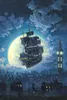 Rodel Gonzalez Sailing Into the Moon Hand-Embellished Giclee on Canvas